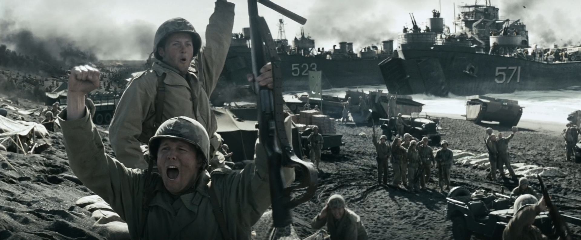 Al día siguiente, 19 de Febrero de 1945, los marines desembarcan en las famosos lanchas de desembarco Higgins. Al llegar a la playa no reciben disparo alguno. Las playas están silenciosas. El soldado de primera clase Ralph "Iggy" Ignatowski, el más inocente de todos, el que no tiene el certificado de masturbación completo, se pregunta si los defensores están todos muertos.