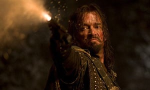 Desde entonces, viste siempre de negro y porta un sombrero caído. Sus armas son un estoque, una daga y unos mosquetes con percutor de pedernal, además del talismán vudú que no ha salido en la primera entrega, y me temo que última de la película.