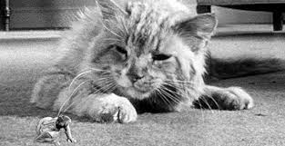 Todo le altera, el ruido, las miradas de su mujer. Scott se vuelve tiránico con Louise. Ella ha de salir a realizar un recado y Louise accidentalmente deja entrar a su gato, Butch. Mientras Scott se ha tumbado en el sofa y quiere dormir. Sin embargo, escucha un ruido sospechoso que resulta ser el gato. Éste con sus garras ataca a Scott, y aunque es alcanzado como un ratón , en última instancia entra en el sótano.
