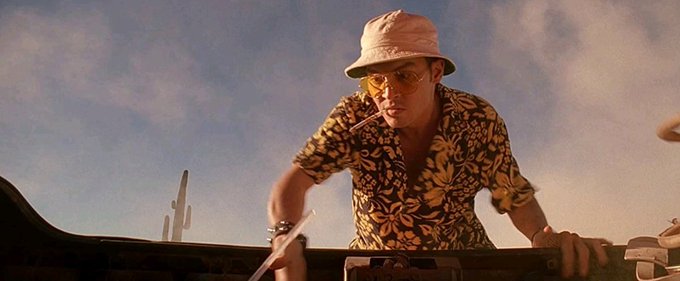 Película bizarra, muy del gusto de Terry Gilliam, pero alejado del mío. Reconozco que el director norteamericano que estuvo en los Monty Phyton es capaz de todo. Desde luego diseña ambientes alternativos, con imágenes que combinan bien con la música y en las que ensarta historias visualmente brillantes, pero que difícil es llevar el hilo y la historia que asumen sus dos protagonistas y en la que se trufan otras historias, personajes y muchas y variadas drogas.