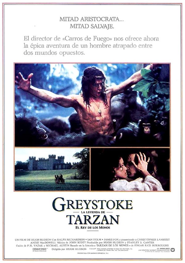 Después de este éxito que alcanzó bastantes premios y en concreto 4 Oscars, realizó la menciona película inspirada en la obra de Edgar Rice Burroughs. Pero las cosas de la nube, tras ver algo más de una hora que incluía la llegada de Tarzán (Cristophe Lambert) al Castillo de los Clayton, único descendiente del conde de Greystoke, su encuentro con el mismo, un enorme Ralph Richardson, nominado a título póstumo, y el inicio de su admiración por Jane Porter (Andie MacDowell), su prima norteamericana, la marcha de Phillipe D'Arnot (Ian Holm) pero...¡vaya por Dios!, paré para ver la Supercopa y la nube de Movistar, me fastidió la continuación al estimar que ya habían pasado los seis meses que me dan para ver la película".