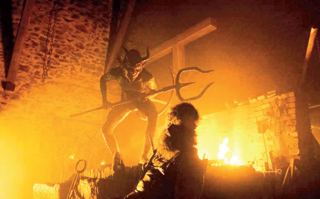 Uxue entra a la forja a recuperar su muñeca mientras Patxi se deshace del cadáver. Dentro, encuentra a un niño cautivo en una jaula de hierro, que le ruega que robe las llaves de Patxi para liberarlo. Cuando lo hace, el niño recupera una horqueta y se revela como el demonio Sartael.