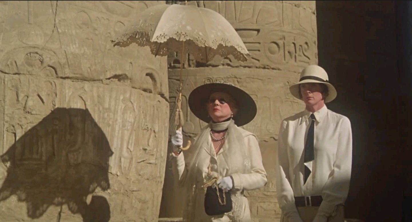 En tercer lugar, Anthony Shaffer sabía que había que extraer interés dramático a un material de partida más bien insustancial. Si Asesinato en el Orient Express versaba sobre la culpabilidad colectiva de una sociedad, Muerte en el Nilo ofrece tres niveles de discurso.