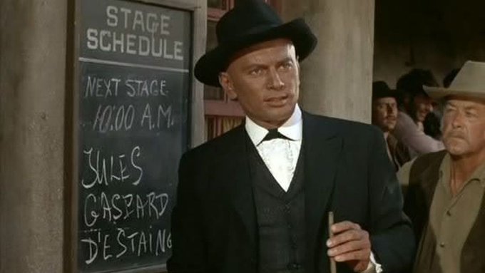 Tras una desafortunada llegada, el pistolero francés criollo de color llamado Jules Gaspard d'Estaing (Yul Brynner) decide quedarse en el pueblo tras la parada de su diligencia y se fija desde lejos en la atractiva Ruth.