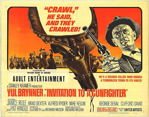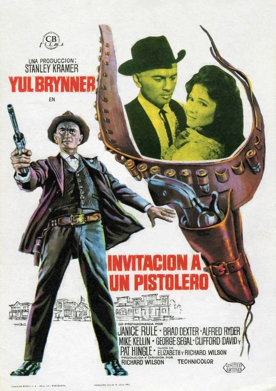 Invitación to a Gunfighter es una película del año 1964 dirigida por Richard Wilson , director y productor que también que participó en el guion inspirado en lo escrito por Hal Goodman y Larry Klein que encuentra entre otros con Yul Brynner como Jules Gaspard d'Estaing, George Segal como Matt Weaver, Janice Rule como Ruth Adams, Alfred Rydervcomo Doc Barker, Bert Freed como Sheriff, Brad Dexter como Kenarsie, Clarke Gordon como el granjero, Clifford David como Crane Adams y Clifford James como Tuttle y Curt Conway como McKeever.